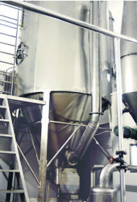 該機采用全封閉形式,所有部件均采用不銹鋼制造,配有三級凈化裝置,過(guò)濾后的空氣達十萬(wàn)級要求 。簡(jiǎn)體與頂部裝有冷壁裝置,使壁溫<80℃,物料在壁上停留也不焦化變質(zhì)現象,大大增加了收粉率(達95%以上),而且不會(huì )產(chǎn)生混藥現象和粘壁現象。