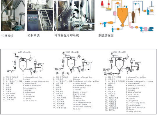 基本原理:中藥浸膏高速離心噴霧裝置是離心式噴霧干燥技術(shù)在特定物料干燥中的應用 ,也是利用高速離心式霧化器使物料分散成霧狀,與熱空氣所充分接觸 ,完成瞬間干燥,形成粉狀成品的干燥裝置。