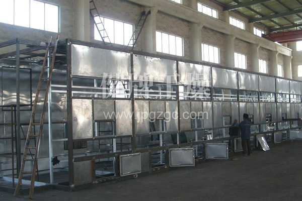 DW系列多層帶式干燥機是成批生產(chǎn)用的連續式干燥設備,用于透氣性較好的片狀、條狀、顆粒狀物料的干燥,對于脫水蔬菜、催化劑、中藥飲片等類(lèi)含水率高、而溫度不允許高的物料尤為合適;該系列干燥機具有干燥速度快、蒸發(fā)強度高、產(chǎn)品質(zhì)量好的優(yōu)點(diǎn),對脫水濾餅狀的膏狀物料,需經(jīng)造?;蛑瞥蓷l狀后方可干燥。