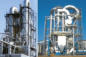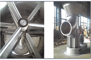 底部強化器設計獨特,攪拌齒為菱形,其流線(xiàn)性能使風(fēng)阻達到低,設置在圓錐形料斗內,分動(dòng)刀和定刀,粉碎效果顯著(zhù),使下落的結塊物料迅速粉碎為適合氣流干燥的粉粒料,攪拌的另一個(gè)主要作用是分散物料,加大了與料斗下面進(jìn)來(lái)的高速熱風(fēng)的接觸面積,于是料斗區形成了一個(gè)強烈傳熱傳質(zhì)的流化床,大部分濕分在料斗區燥。隨著(zhù)干燥的進(jìn)行,變輕變細的干料受氣流作用明顯,與氣流一起上升并進(jìn)一步干燥,然后從干燥塔頂部出來(lái)進(jìn)入物料收集系統。