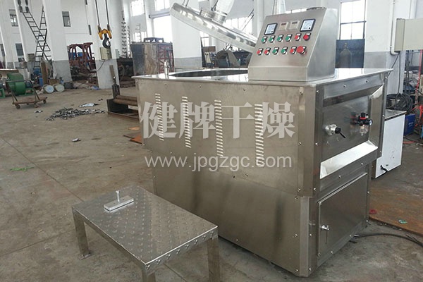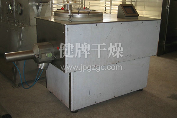 粉體物料與粘合劑在圓筒形容器中由底部混合漿充分混合成濕潤軟材,然后由側置的高速粉碎槳切割成均勻的濕顆粒。